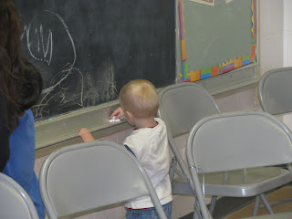 And Tucker found some of the other siblings and made himself at home with the chalk board.